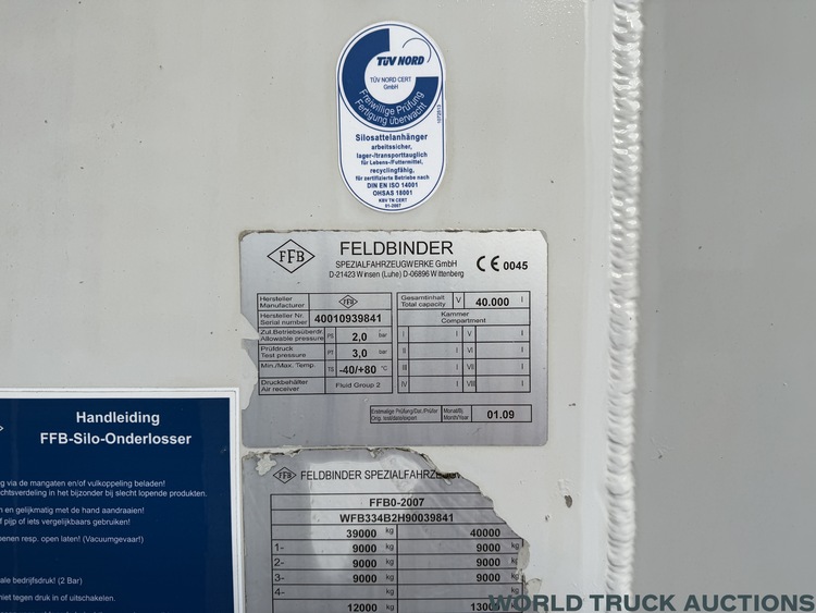 Feldbinder EUT 40 3 | Alu. Zement Silo - Powder Bulk tank Onderlosser 1 Comp.| Semi-Trailer 646 | 39 m3 | 3 Axle | 2009